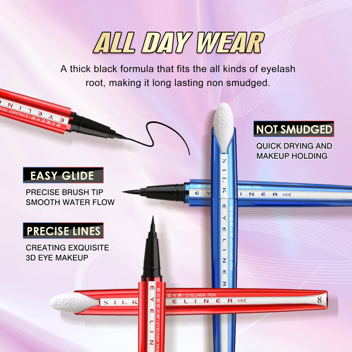 Humidity-proof, sweat-resistant formula stays put through blinking, tears, or oily skin, ensuring crisp eyeliner without fading or cracking.