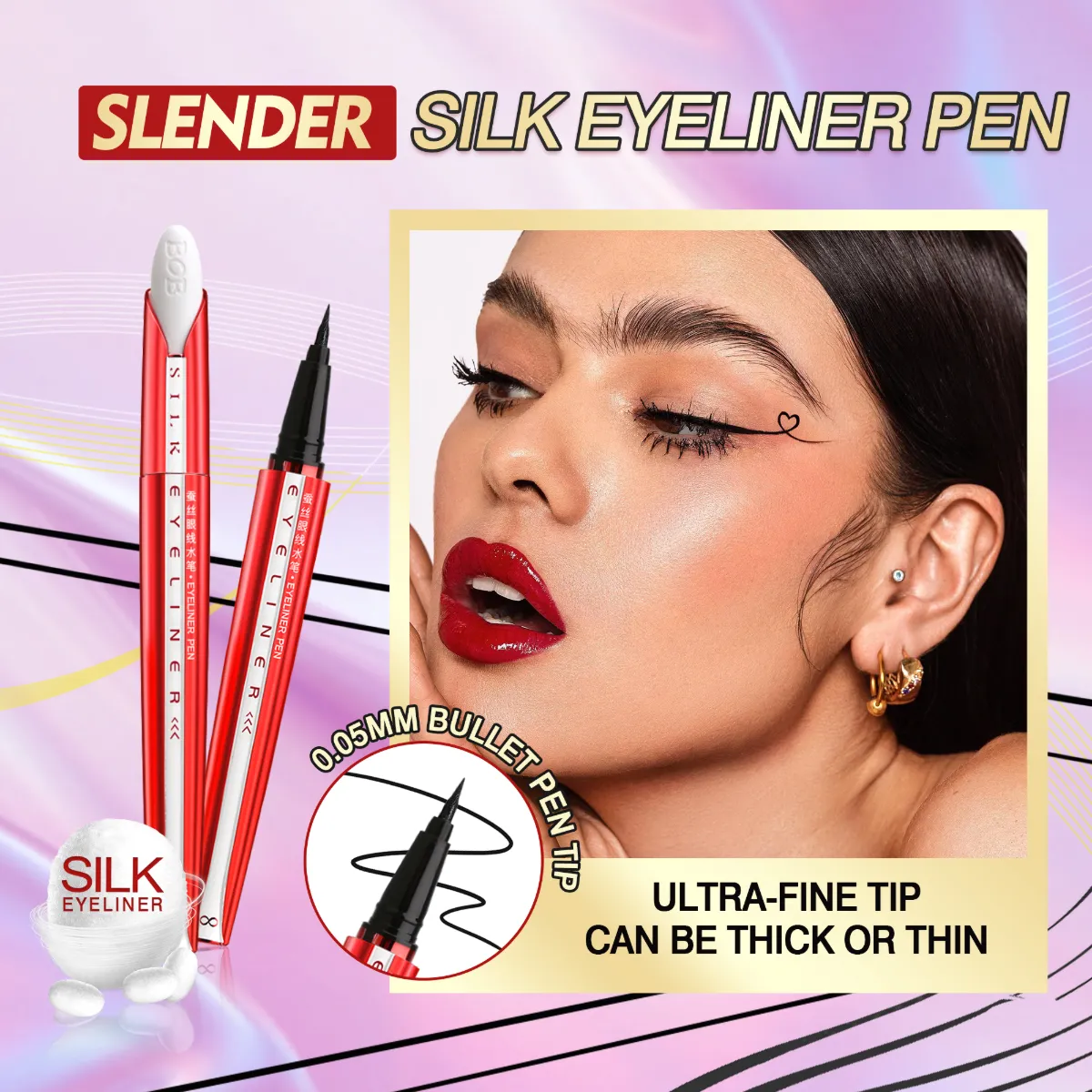 Adjust pressure to craft delicate hairlines or dramatic strokes with one versatile bullet-shaped tip for limitless eye makeup creativity.
