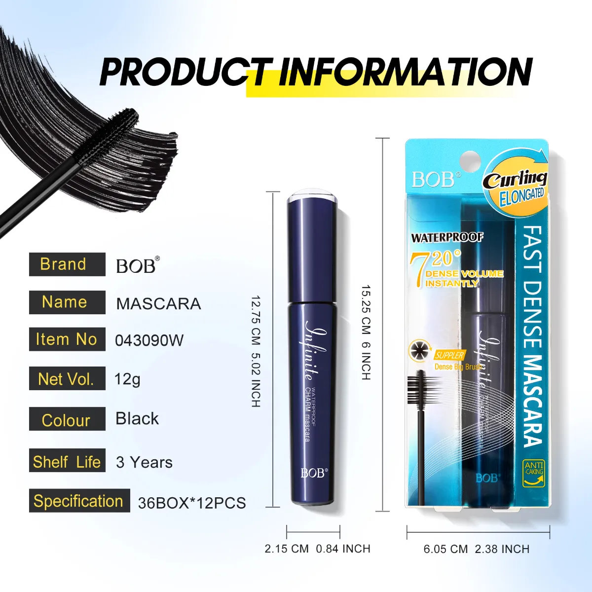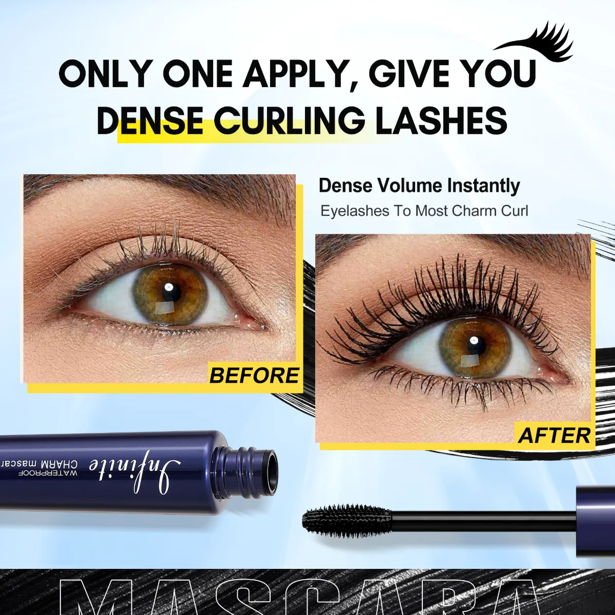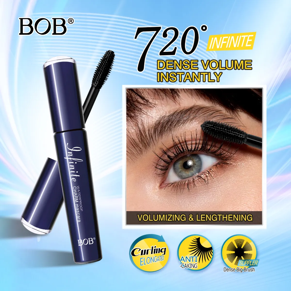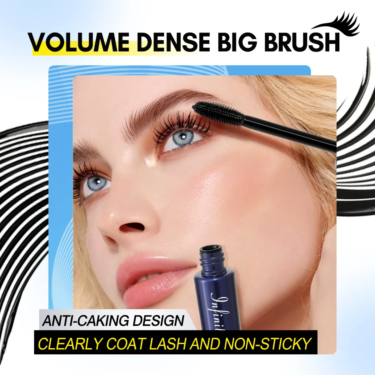 A escova anti-grumos reveste uniformemente cada cílio para um efeito ousado, densidade espalhada sem pegajosidade ou acúmulo de aranha.